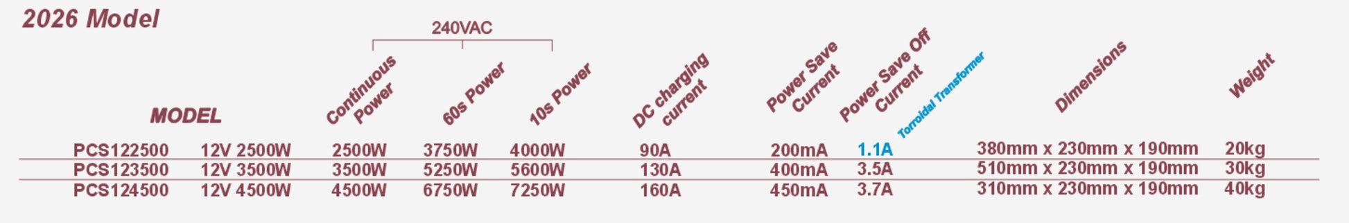 | Default AC voltage | 240VAC |